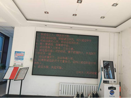 兰岭乡将诚信教育作为学习内容,纳入机关日常业务学习,利用电子大屏滚动播放诚信宣传标语,形成“抬头见诚信、低头思诚信”的视觉冲击,增强诚信文化的渗透力和影响力,让机关干部职工在日常工作中时刻感受到诚信的重要性,扩大宣传覆盖面。同时通过专题会议集中学习《黑龙江省社会信用条例》,会议上重点解读诚信建设的重要内容,干部职工诚信履职的行为规范,提高广大干部的诚信意识,将诚信意识凝聚成机关工作发展的正能量,推动诚信宣传教育进机关活动走深走实,积极弘扬诚信文化,推动形成守信践诺的良好氛围。